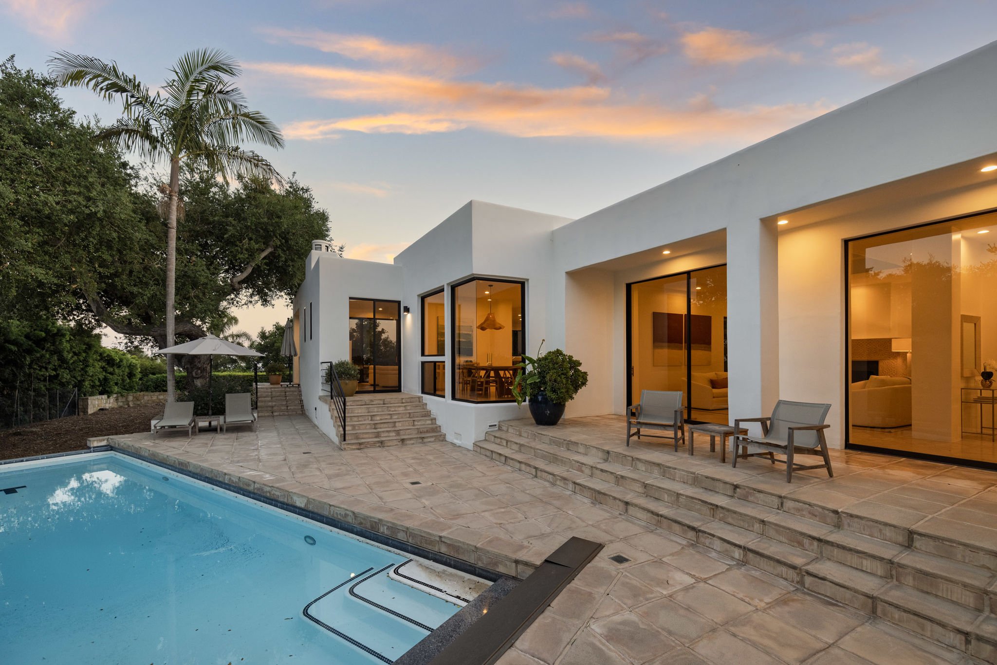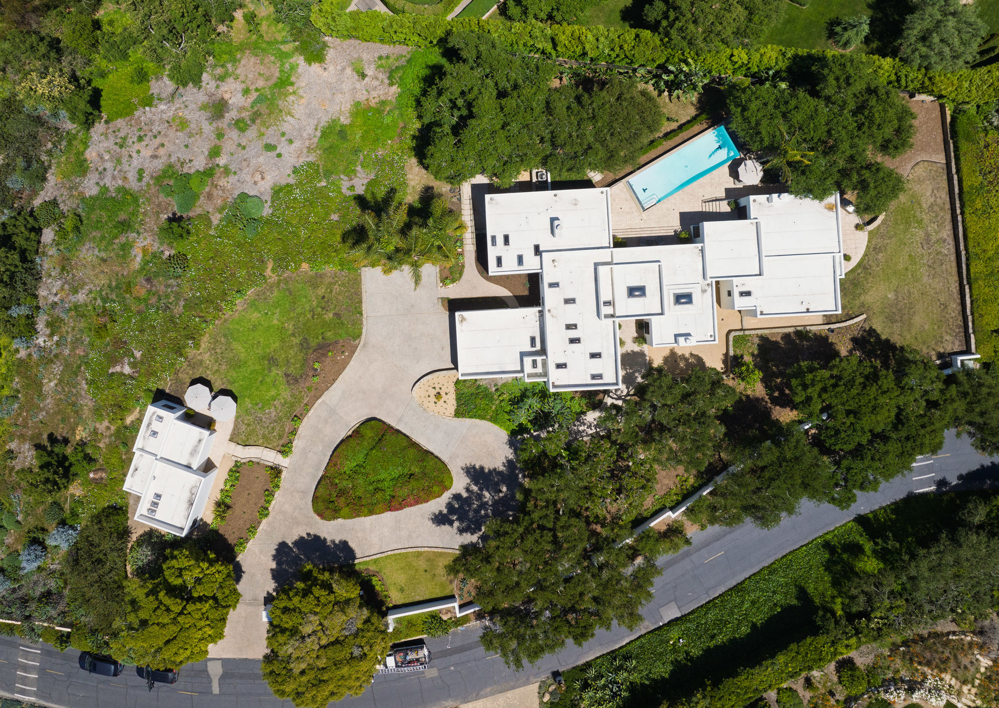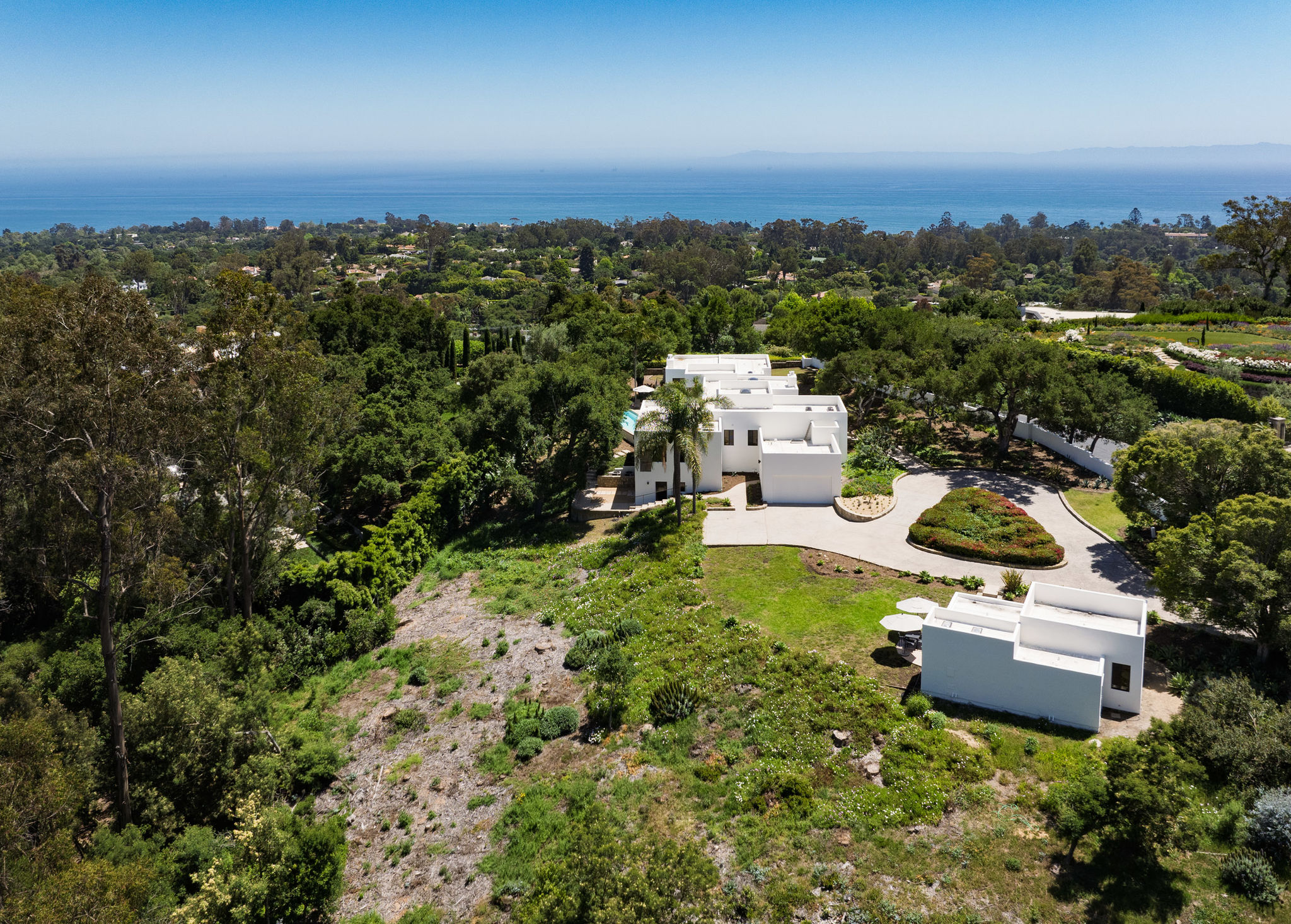 Dramatic moments unfold as you enter this securely walled and gated, 1.5-acre estate, where bold architectural lines meet natural textures, a lush landscape, explosive mountain views and ocean peeks.