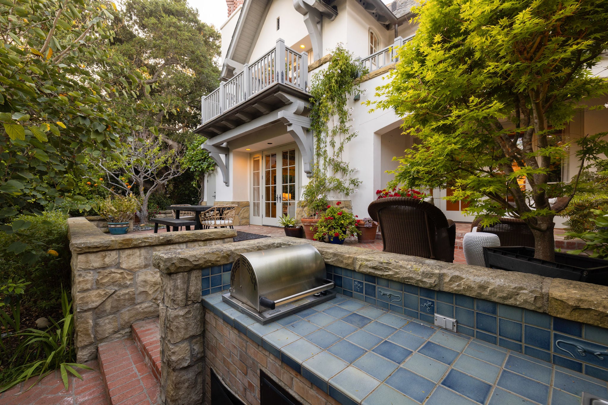 Tucked behind garden paths and climbing vines, the outdoor spaces unfold with a quiet sense of romance—softly lit, deeply private, and made for evenings that linger.