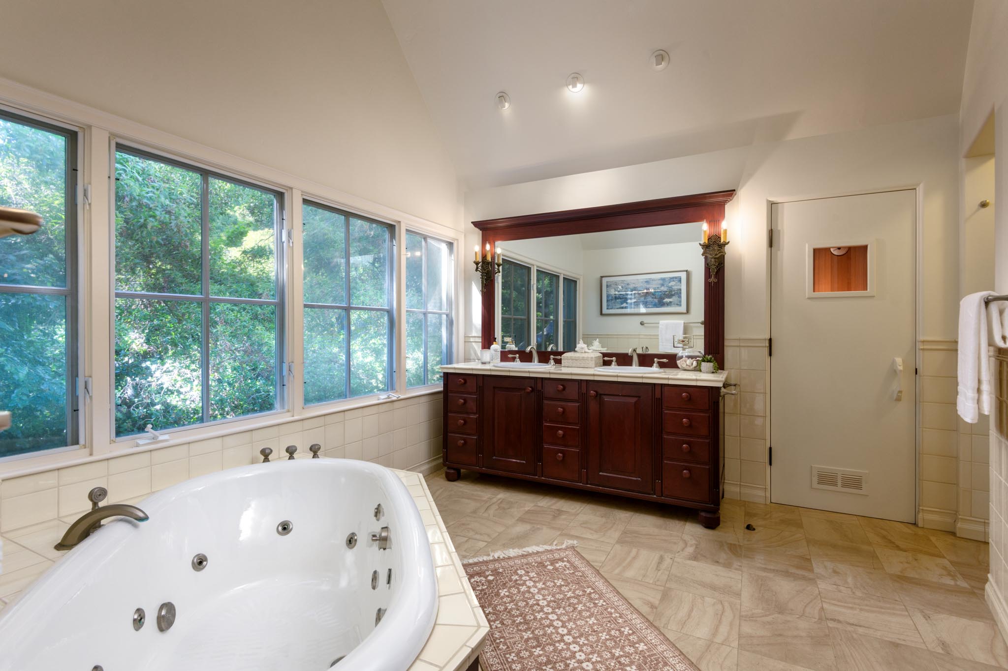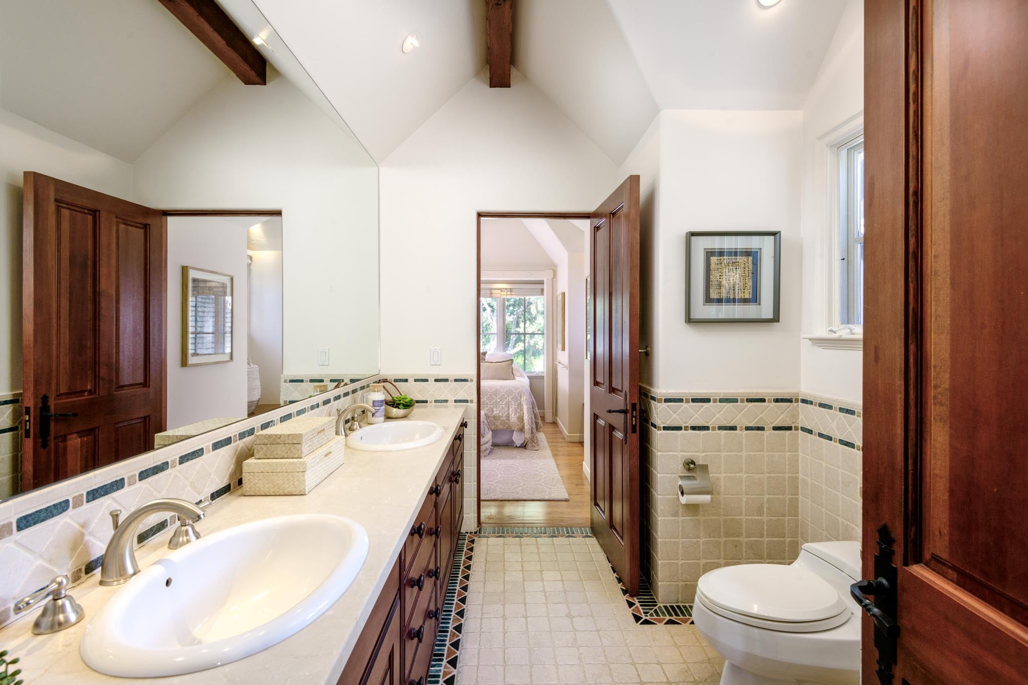 Marble countertops and custom tile-work in the bathrooms
