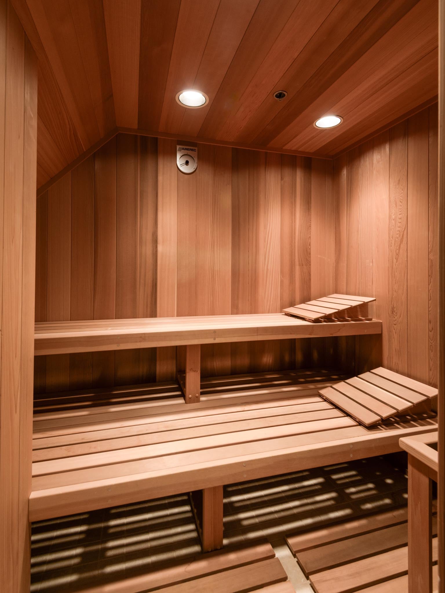 Custom closet and dry sauna in the primary bathroom