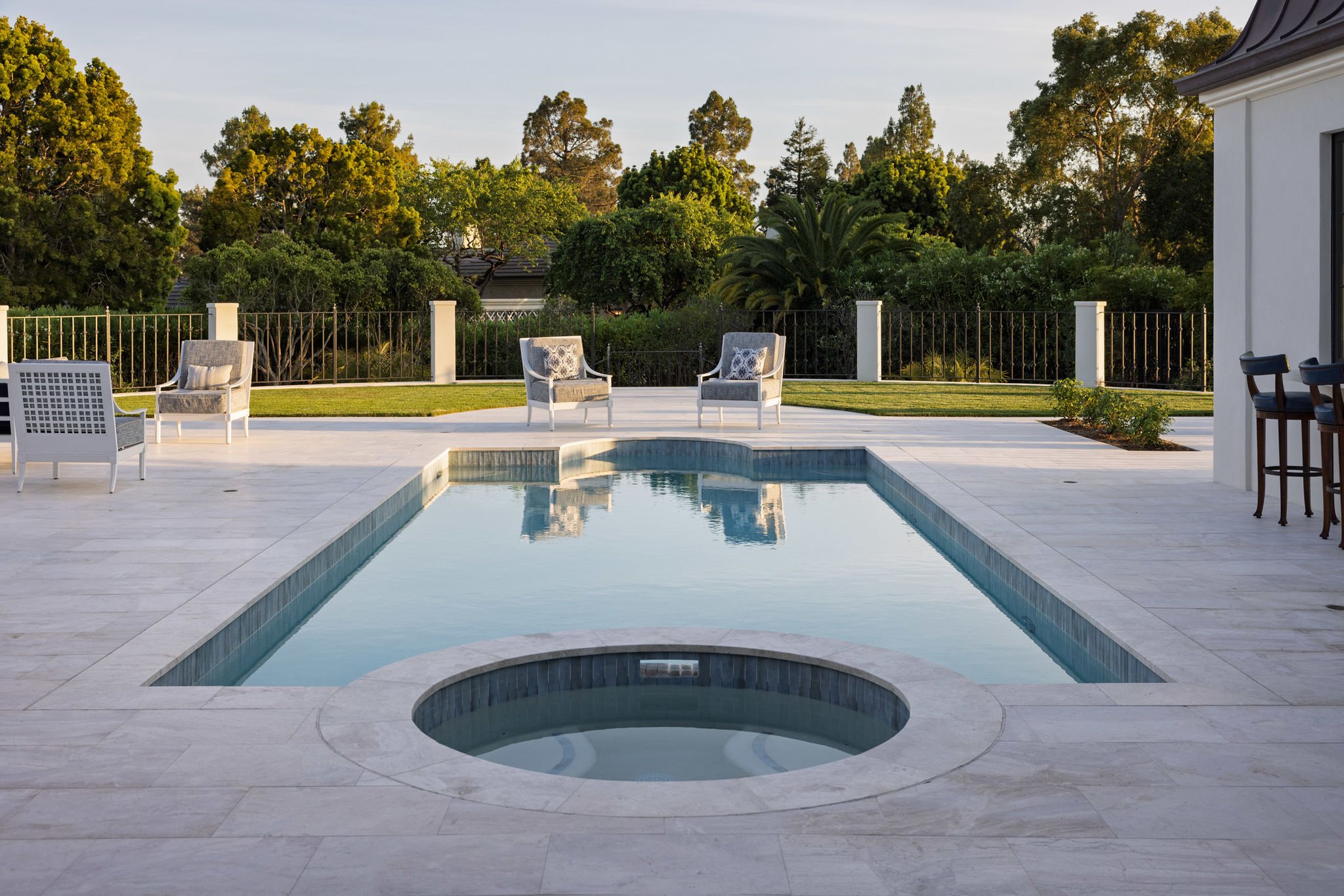 Expansive Turkish travertine patios for seamless indoor-outdoor living