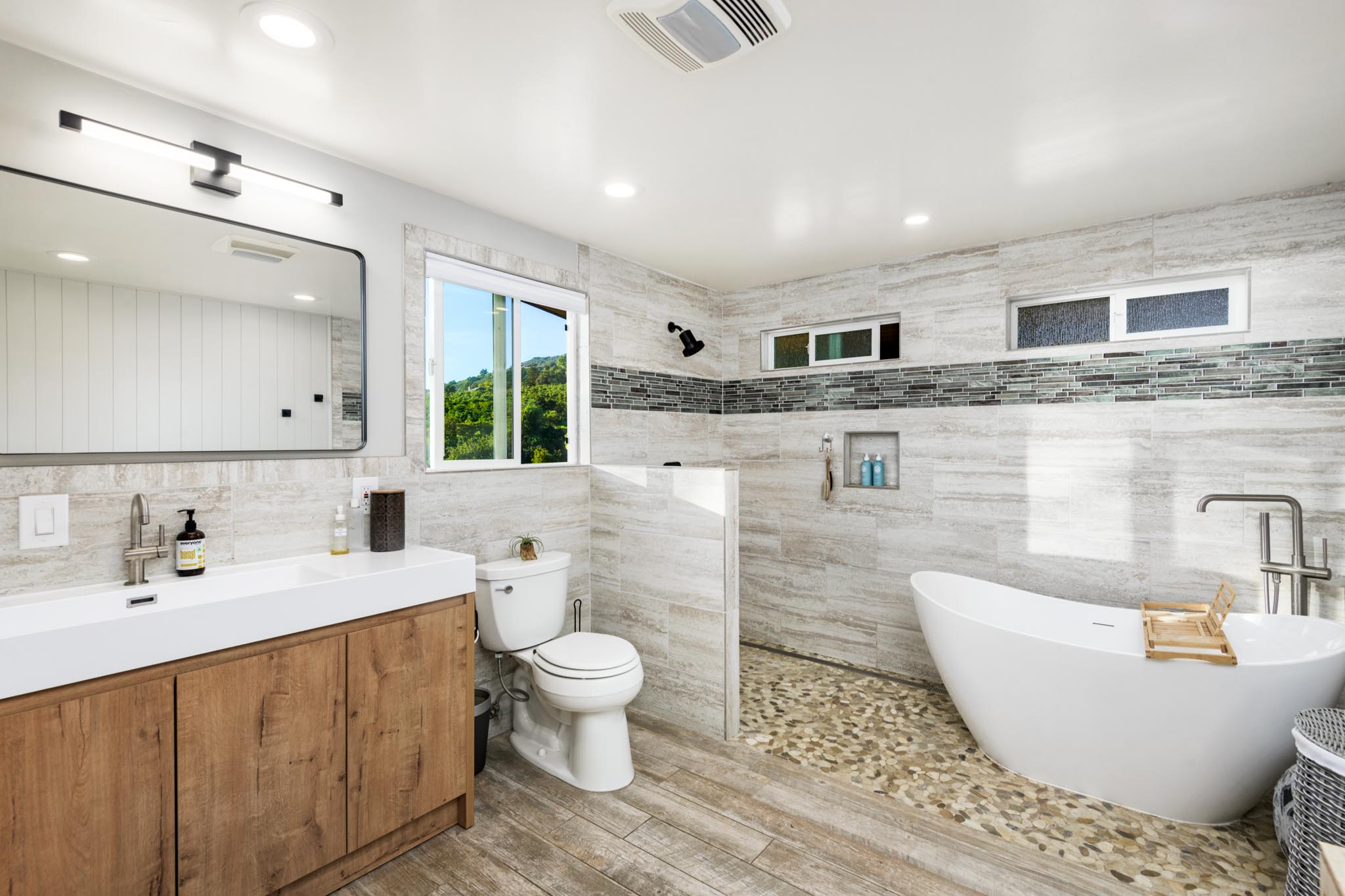 Single-level 4 bed/ 3 bath main residence with open, light-filled interiors