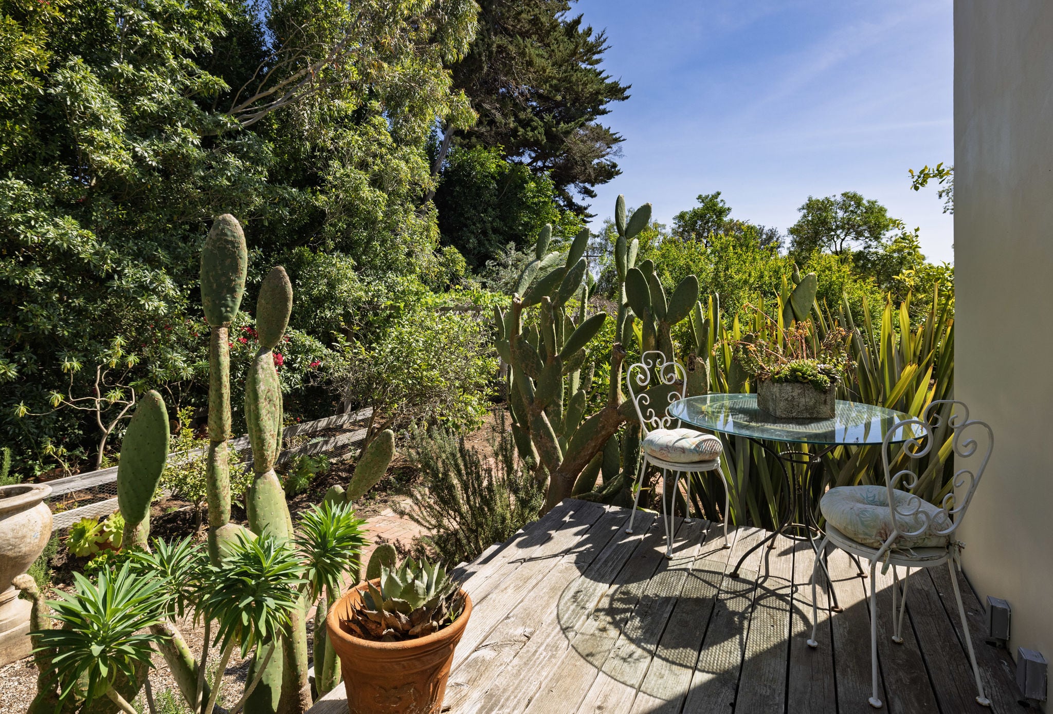 A tropical garden, cactus garden, and a thriving orchard with citrus, avocado, persimmon, pomegranate, grape, passion fruit, and more.