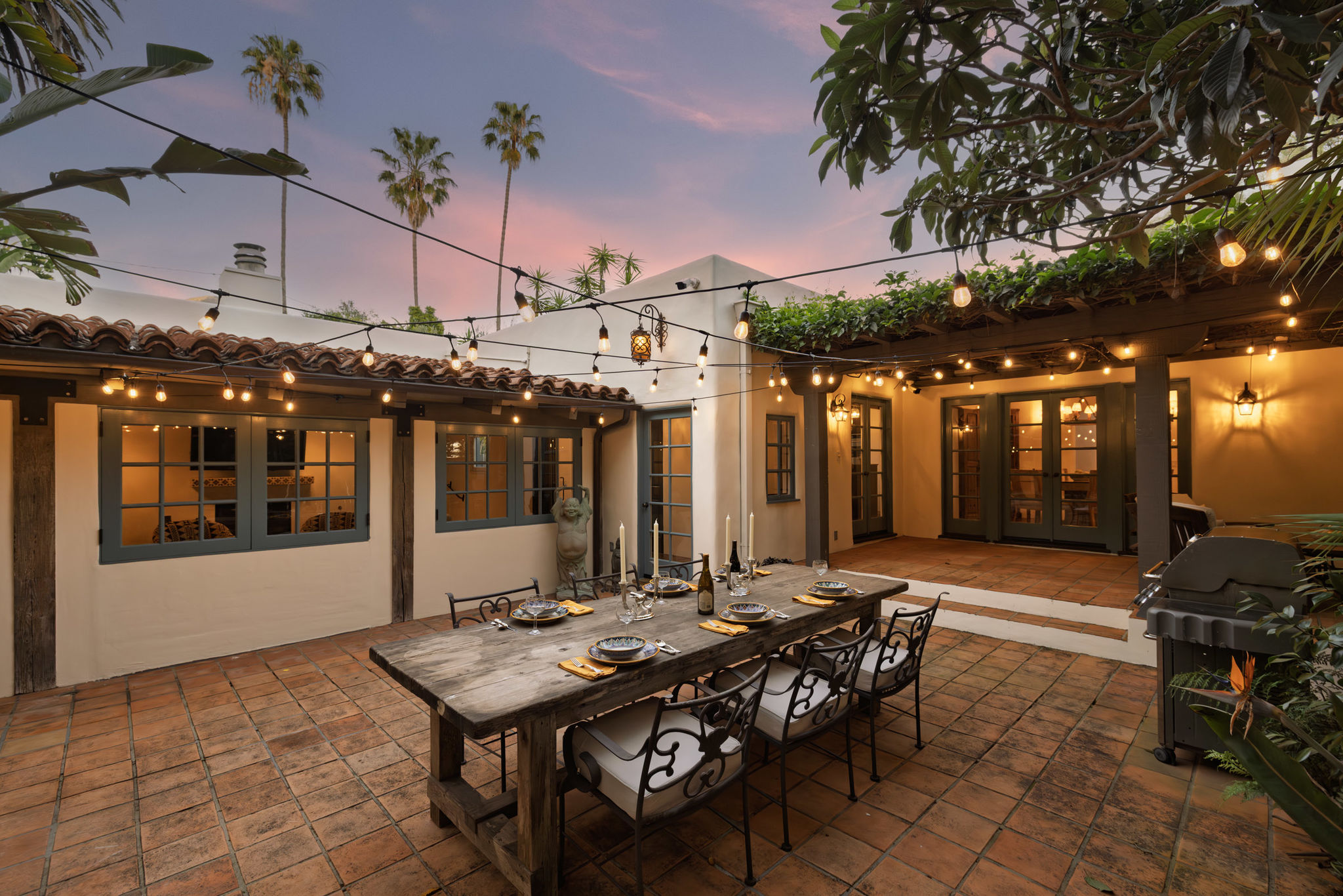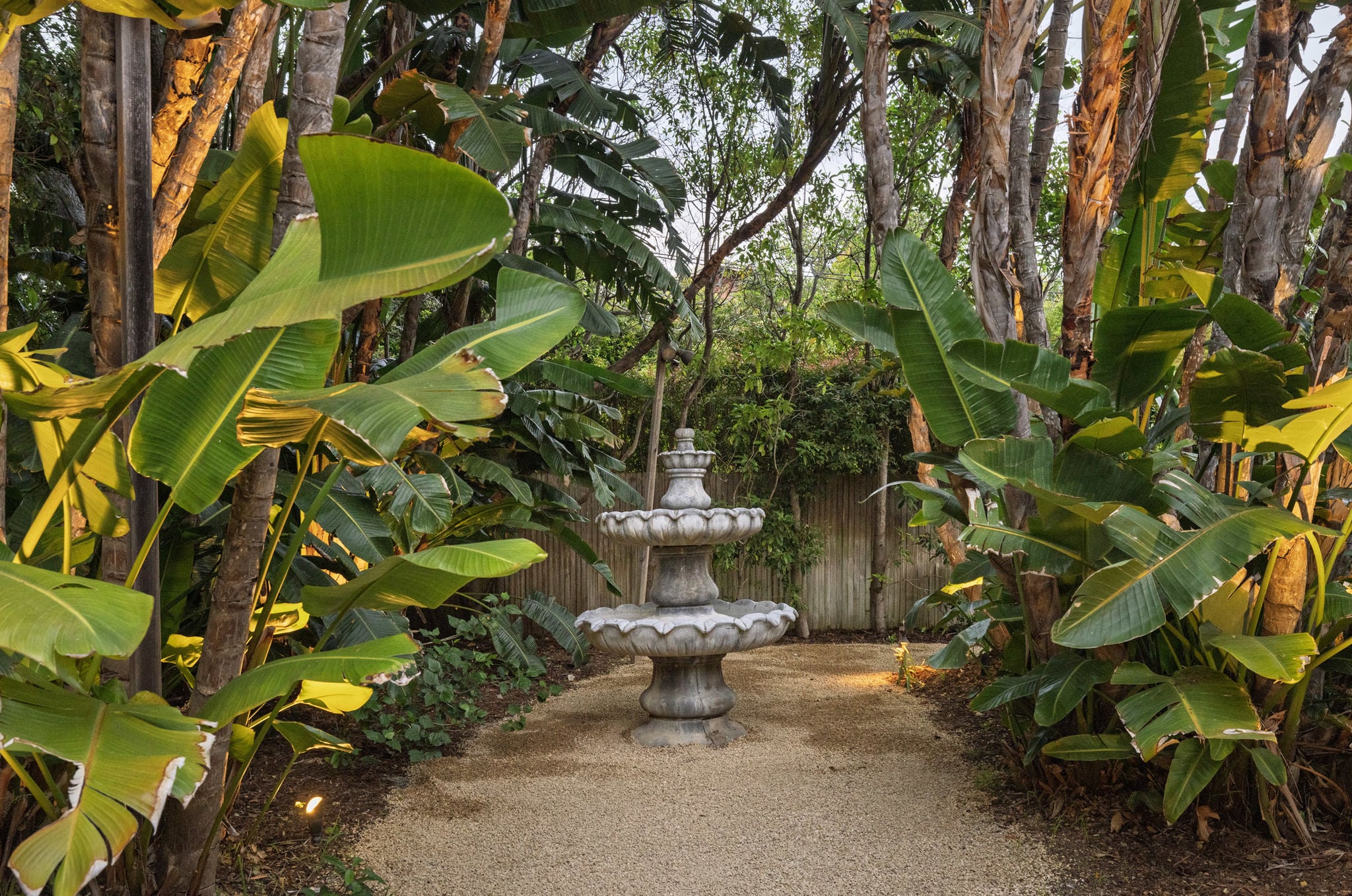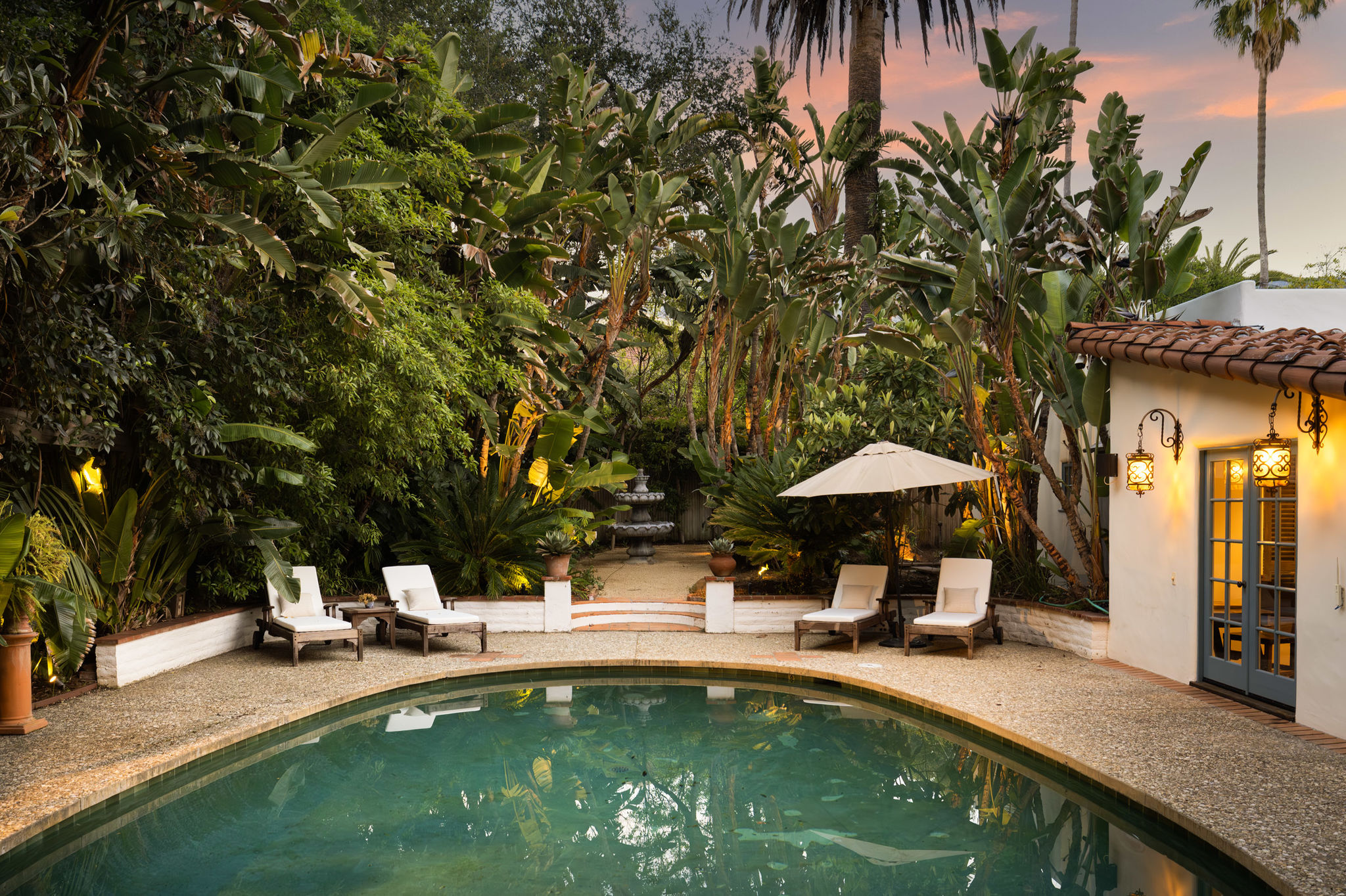 As evening settles, the atmosphere softens. Low light weaves through the gardens, fountains echo gently, and the air carries a sense of calm that feels distinctly Montecito. Doors remain open, conversations linger, and time begins to slow.