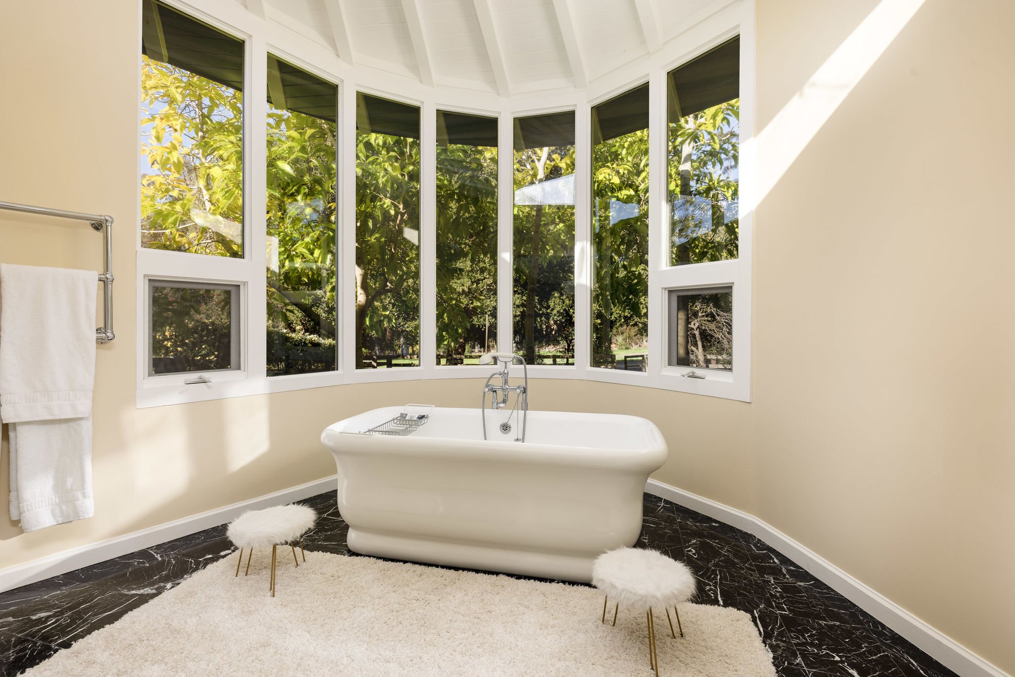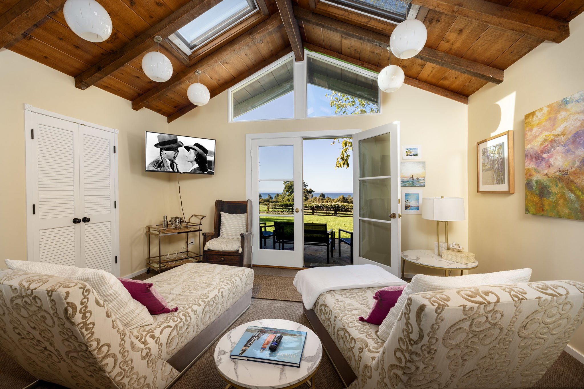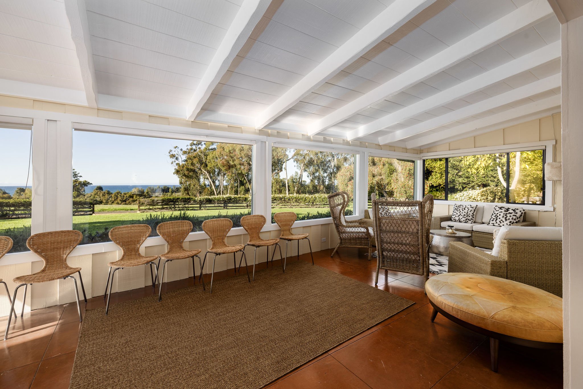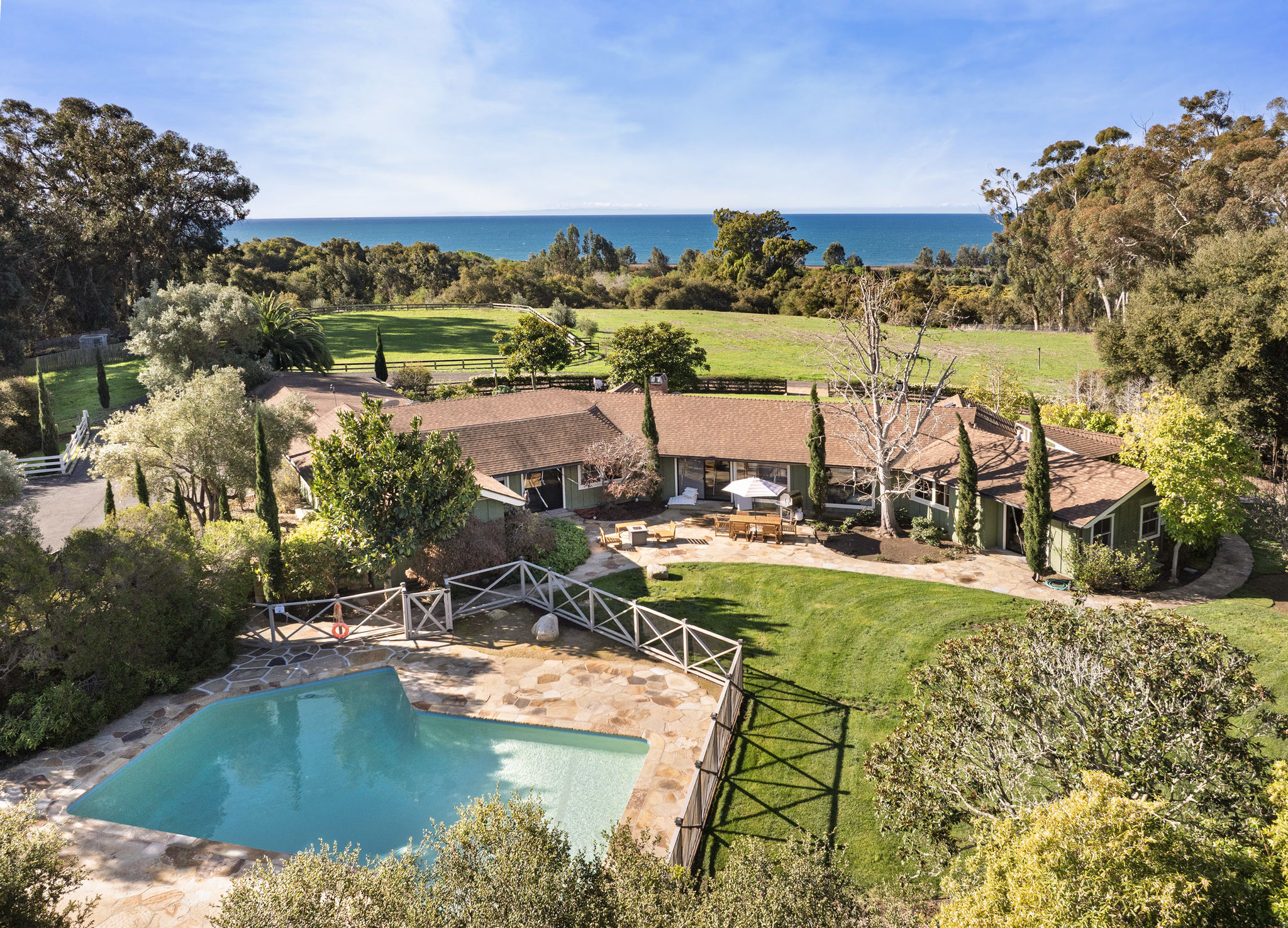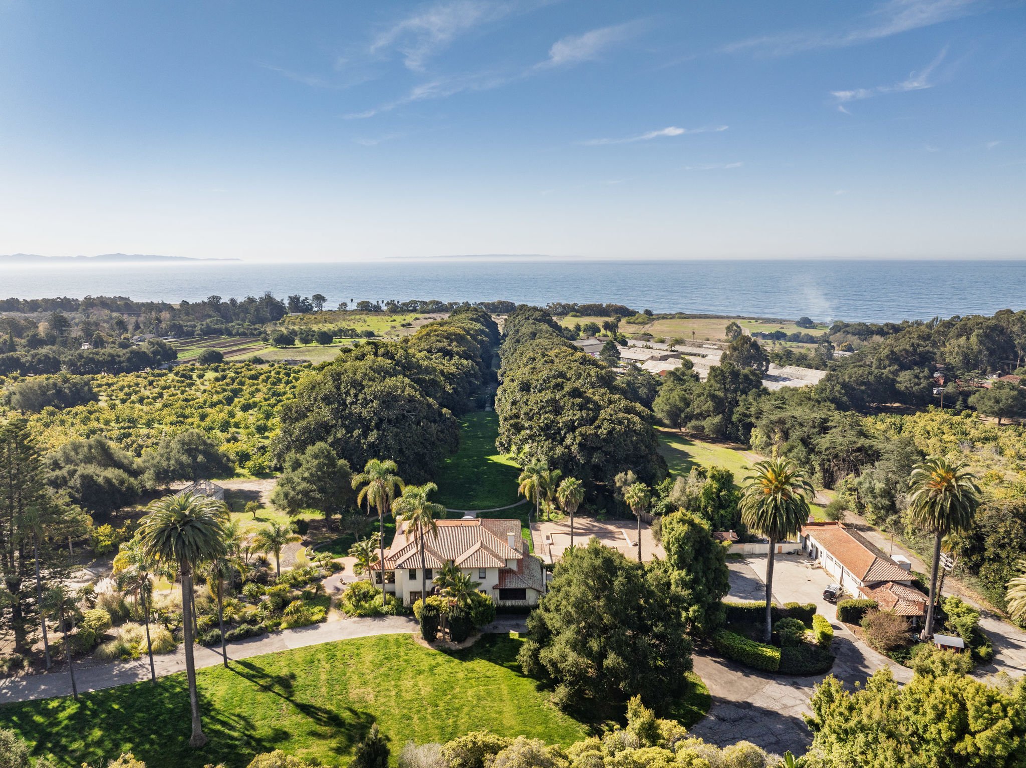 A place where history, nature, and family intertwine, this property is a rare jewel ready to be refreshed and reimagined. At its heart stands a romantic Mediterranean-style mansion—a 5-bedroom, 6.5-bathroom retreat with a pool, where an ancient Morton Bay fig aisle leads the eye toward the Pacific.